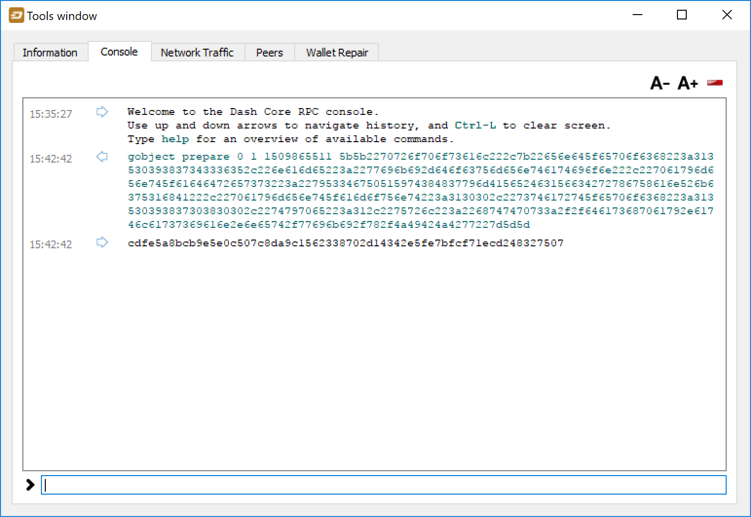 Dash Core Wallet Console#