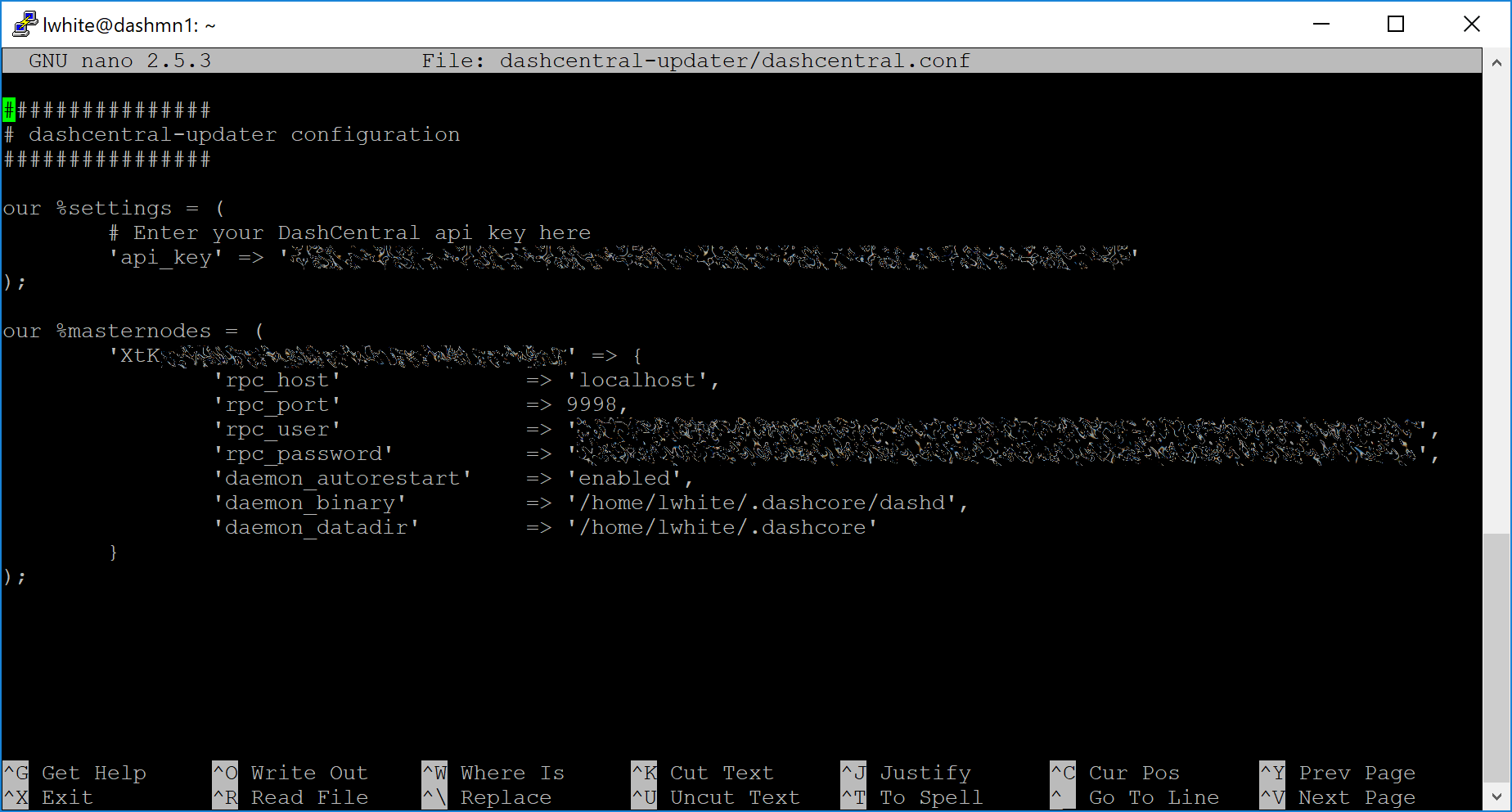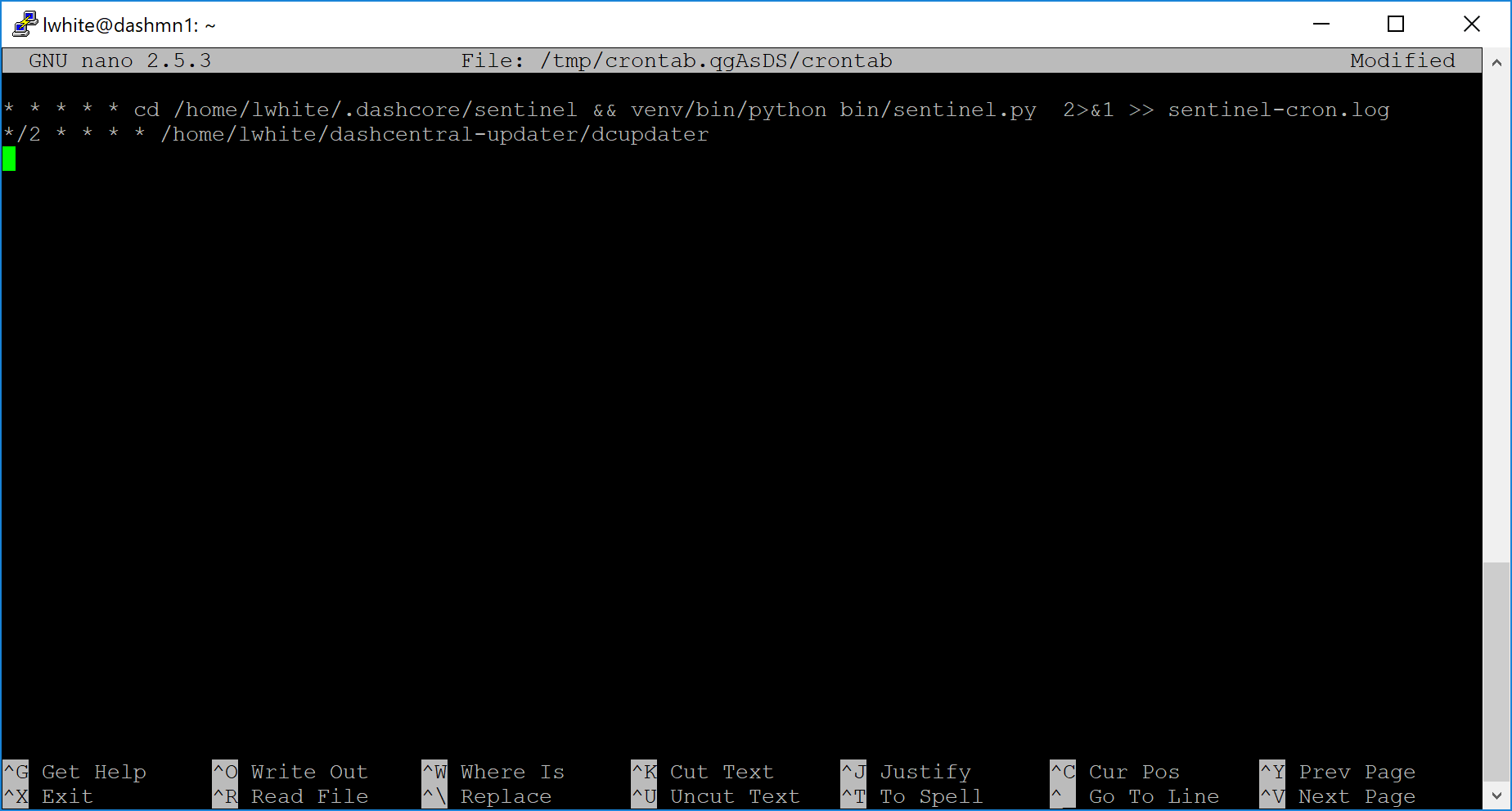 Press Ctrl + X to exit, confirm you want save with Y and press Enter. The dcupdater script will now run every two minutes, restart dashd whenever necessary and email you in the event of an error.