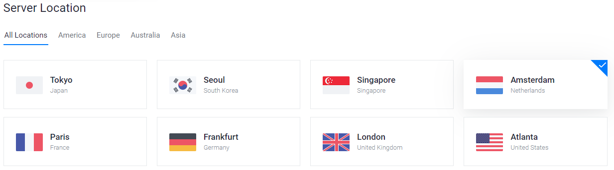Before beginning, take a few minutes to review the masternode and evonode hardware requirements which may help you decide which VPS provider best suits your needs. We will use Vultr hosting as an example of a VPS, although DigitalOcean, Amazon EC2, Google Cloud, Choopa and OVH are also popular choices. First create an account and add credit. Then go to the Servers menu item on the left and click + to add a new server. Select a location for your new server on the following screen: