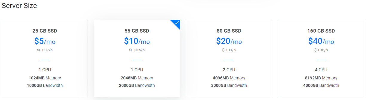 Select a server size according to the hardware requirements for you masternode or evonode: