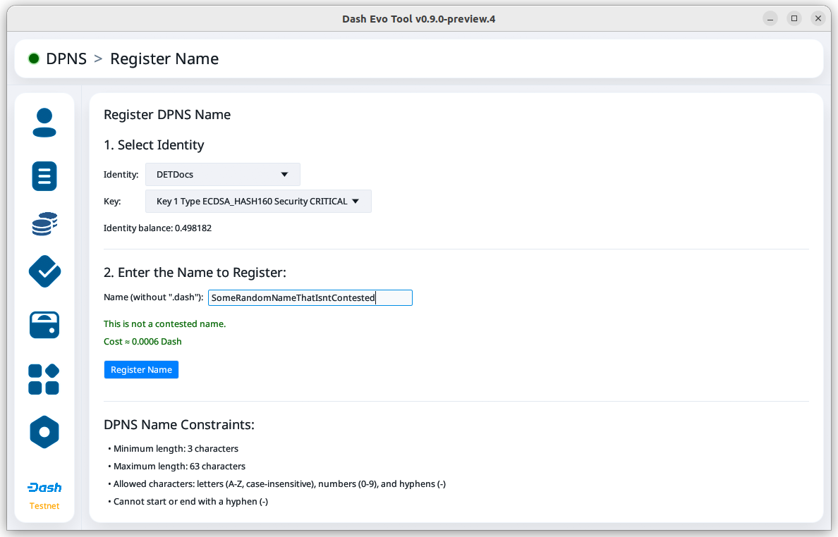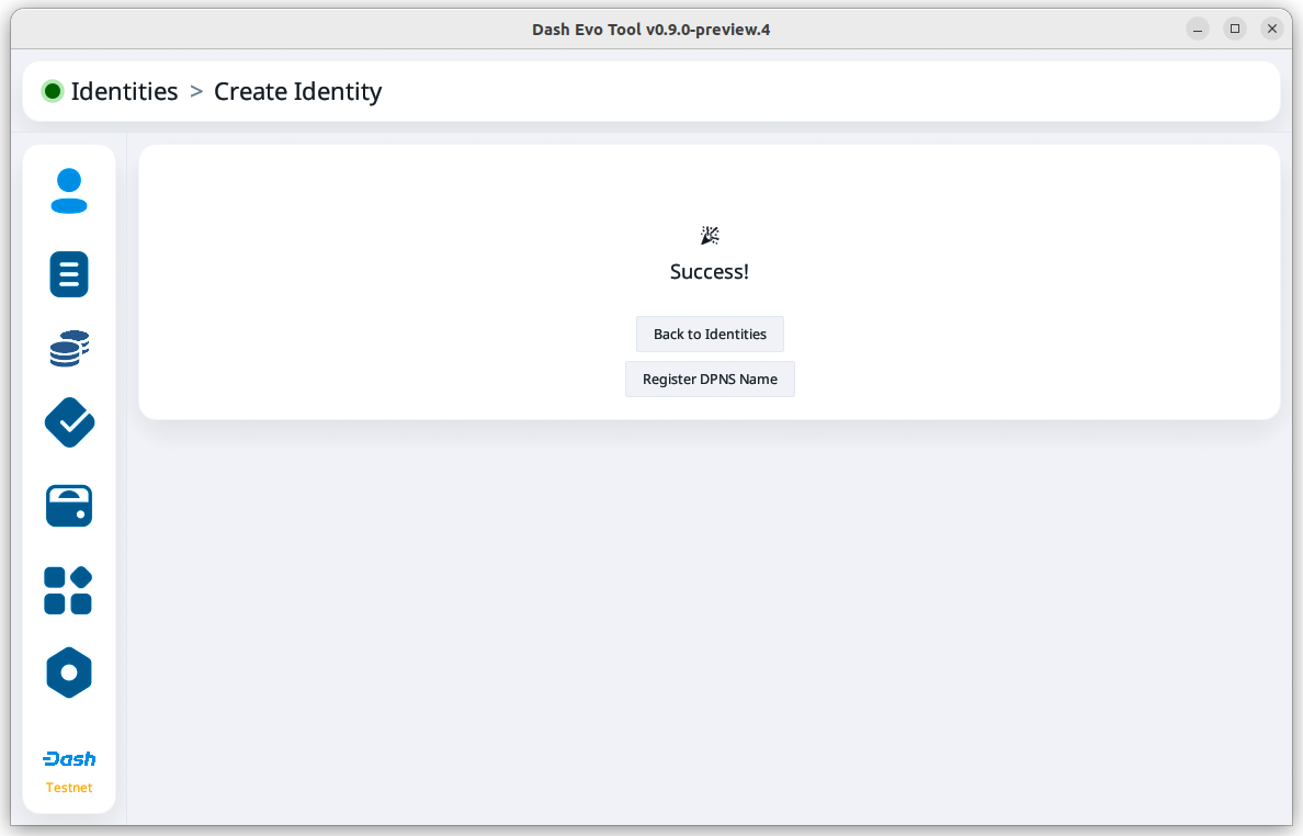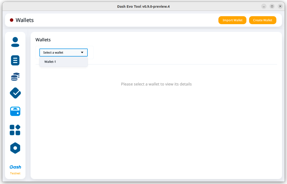 Before creating an identity, make sure you have added a Dash Evo Tool wallet.