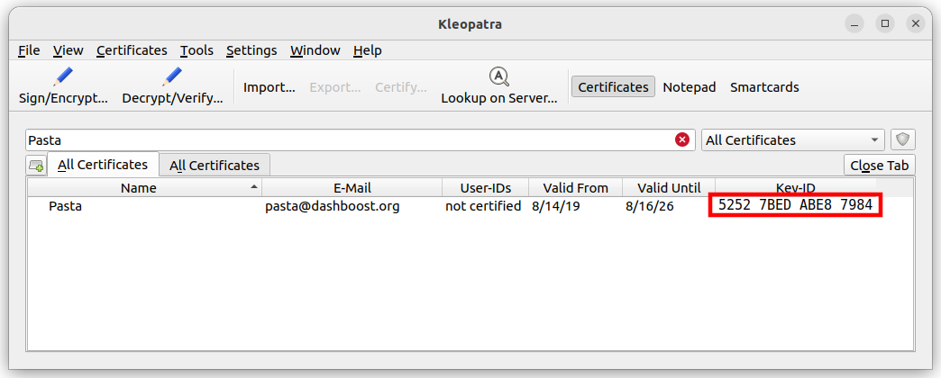 Importing Pasta’s GPG public key#