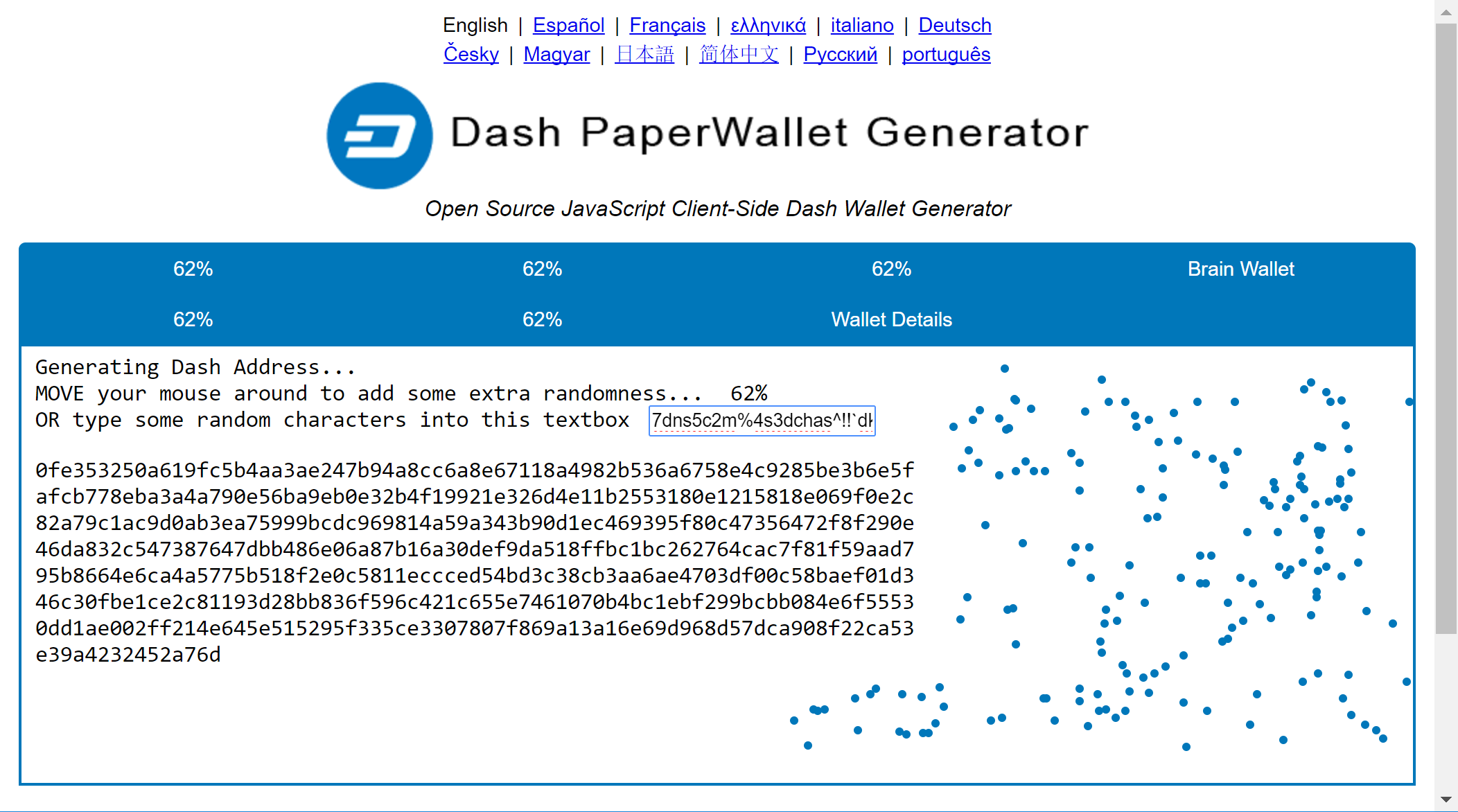 Since the source code for all three options is largely similar, this guide will use https://paper.dash.org as an example. The websites listed here run entirely in your web browser without sending any of the data generated to an external server, but the most secure option is to download the wallet generator and run it on a computer with a freshly installed operating system that is not connected to the internet.