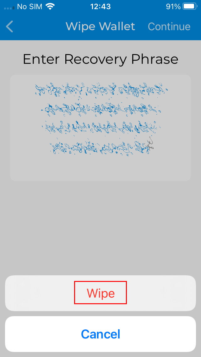 Restoring a 12-word recovery phrase using Dash wallet for iOS