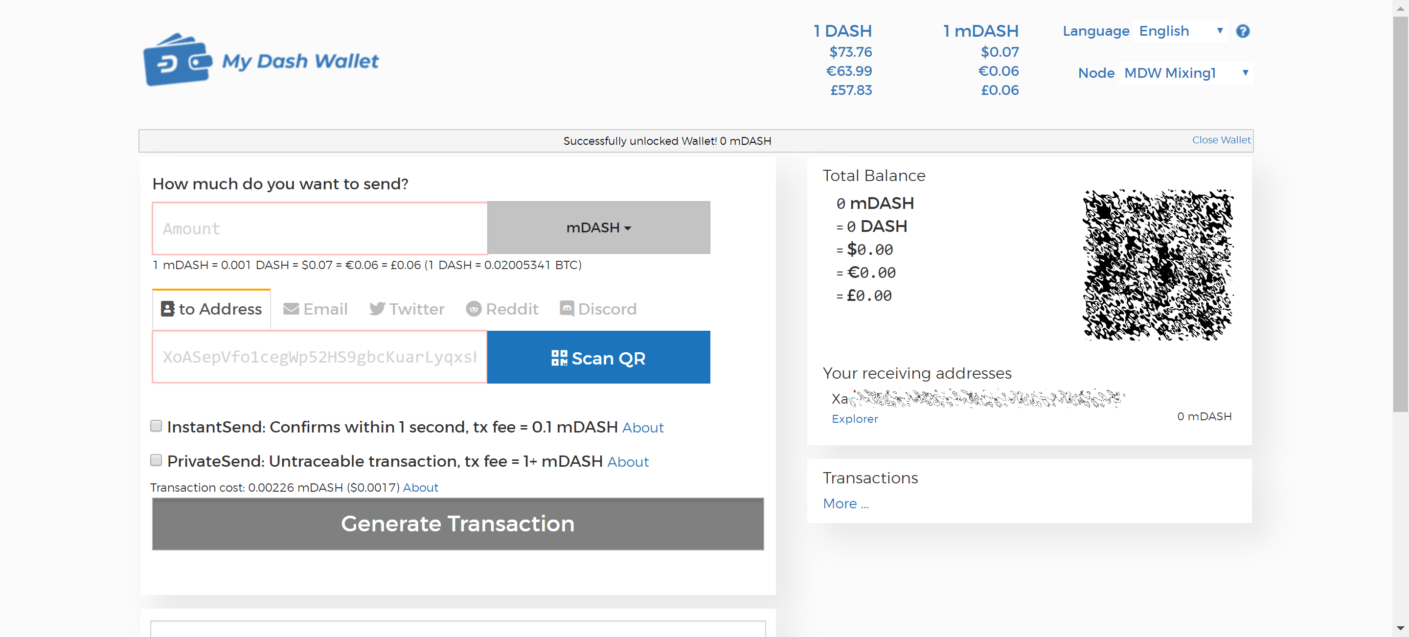 MyDashWallet is a web interface to the Dash blockchain, inspired by MyEtherWallet and created by DeltaEngine.net. It is explicitly not an online wallet, meaning you maintain control over your private keys at all times. Unlike many other light wallets, MyDashWallet also supports advanced Dash features such as InstantSend and CoinJoin. The project is non-profit, open source and free to use. You can load a wallet and transact in a variety of wallet formats:
